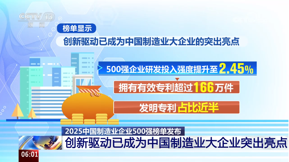 2025中国制造业企业500强榜单参照国际通行的做法,以2024年企业营业收入为入围标准,入围门槛持续提升,从“十三五”末的110.91亿元提高至173.65亿元,标志着我国制造业大企业整体实力稳步增强。2025中国大企业创新100强则聚焦企业研发投入强度、研发费用、发明专利数、收入利润率等指标的综合评价,挖掘和展现中国大企业的创新能力与成果,现已成为衡量企业创新水平的重要指标之一,本次为连续第5年推出。
