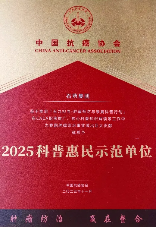 z6尊龙官方网站集团荣获中国抗癌协会“2025年科普惠民示范单位”